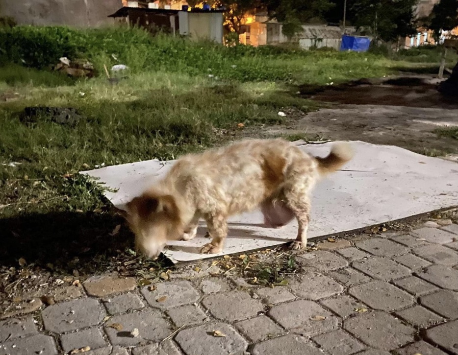 Ti được trông thấy khi đang lang thang trên đường với khối u lớn đã lở loét ra nơi bụng, lúc nhúc giòi làm tổ. Lập tức Ti được đưa đến phòng khám kiểm tra. Tình trạng rất xấu, khối u nhiễm trùng lan rộng, nhiễm kí sinh trùng máu...
