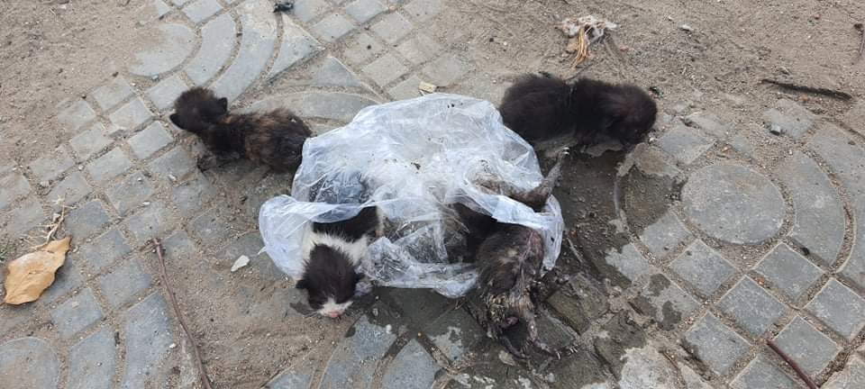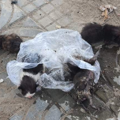 Four newborn kittens were wrapped in a plastic bag and thrown away. There were maggots all over their bodies, especially in their ears and anuses. At that time, we had no choice but to ask for help from sanitary volunteers to take the maggots out and sanitize their bodies, before taking them to the Clinic to eliminate the remaining maggots in their anuses and get the prescription.